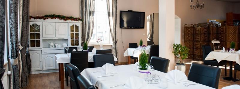 Nasz hotel posiada również restaurację, gdzie można delektować się tradycyjnymi potrawami przygotowanymi przez naszego Szefa Kuchni. Menu oferuje różnorodne dania, które zadowolą nawet najbardziej wymagających smakoszy.