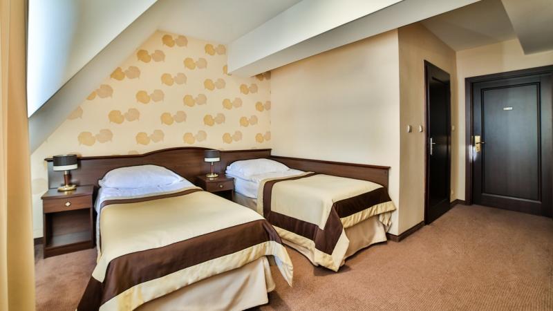 Nasze pokoje hotelowe zostały zaprojektowane z myślą o Twoim komforcie. Utrzymane w stonowanych, naturalnych kolorach, stanowią doskonałe miejsce do relaksu i pracy. Oferujemy różne standardy pokoi: standard, biznes oraz de luxe. Każdy z nich wyposażony jest w: