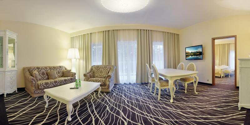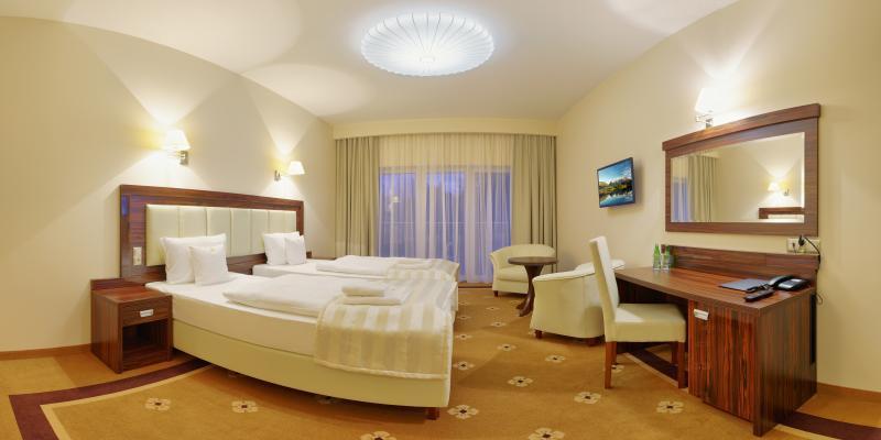 Do dyspozycji naszych gości oddajemy aż 106 pokoi dwuosobowych, w tym pokoje przystosowane dla osób niepełnosprawnych. Ponadto, posiadamy 4 luksusowe apartamenty oraz 2 Studio. Nasze pokoje są komfortowe i eleganckie, zapewniając naszym gościom przytulne i wygodne miejsce do odpoczynku.