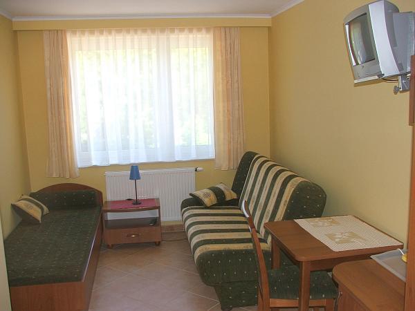 Każdy pokój wyposażony jest w łazienkę, chłodziarkę, czajnik bezprzewodowy, naczynia oraz telewizor. Ceny zaczynają się od 50 zł za osobę w sezonie i od 35 zł poza sezonem. Apartamenty oferujemy w cenie do 250 zł za większy i do 200 zł za mniejszy.