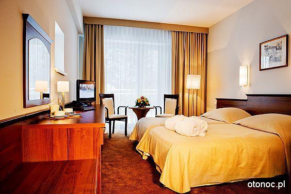 Zapraszamy do czterogwiazdkowego Hotelu Krynica, położonego w malowniczym otoczeniu Beskidu Sądeckiego. Nasz hotel oferuje 147 komfortowych pokoi i apartamentów, które mogą pomieścić łącznie 299 osób. Każdy pokój posiada balkon, z którego można podziwiać zapierające dech w piersiach widoki na panoramę Krynicy Zdrój, Górę Parkową oraz zbocza góry Krzyżowej.