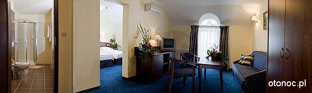 – **Klimatyzowane apartamenty typu studio** na trzecim piętrze, idealne dla klientów biznesowych, z częścią dzienną i wydzieloną sypialnią.