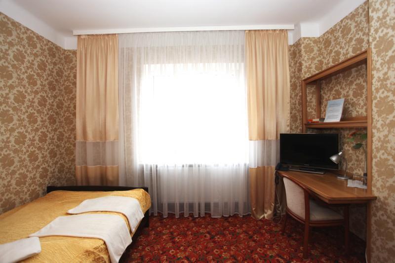 Zapraszamy do naszego spokojnego i przestronnego hotelu w Płocku, gdzie każdy znajdzie coś dla siebie. Oferujemy różnorodne pokoje, w tym jedno- i dwuosobowe, studio oraz apartamenty, co pozwala nam zapewnić komfort aż 100 gości jednocześnie. Wszystko to w atrakcyjnej cenie. Nasze pokoje są jasne, elegancko urządzone i wyposażone w telefon, telewizor z TV-SAT, stały dostęp do internetu oraz nowoczesne łazienki.