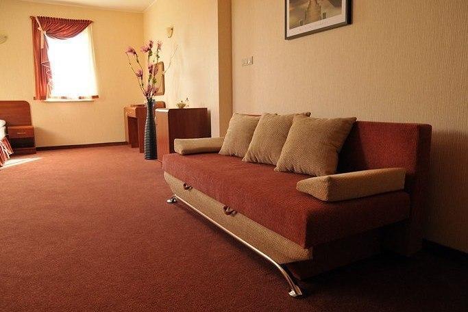 – Apartament z dodatkową częścią wypoczynkową wyposażoną w dwa fotele, stolik i sofę,