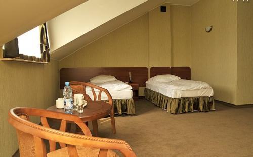 – Eleganckie i wygodne pokoje z telewizorem, łazienką z prysznicem, zestawem kosmetyków, suszarką do włosów, biurkiem, radiem z budzikiem, telefonem, bezpłatnym WiFi, klimatyzacją oraz czajnikiem do parzenia kawy i herbaty,