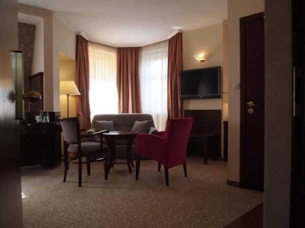 Nasz hotel oferuje 23 komfortowo wyposażone pokoje, w tym pokoje jednoosobowe, dwuosobowe (w tym pokoje z jednym łożem małżeńskim), pokój Studio oraz pokój dwuosobowy de Lux. Wszystkie pokoje posiadają łazienki z prysznicem lub wanną, telefon, telewizję oraz dostęp do Internetu. W niektórych pokojach jest również klimatyzacja. Hotel jest wyposażony w windę, a dla rodzin z dziećmi oferujemy pokój typu “de luxe”, który posiada większą przestrzeń oraz dodatkowe umeblowanie w postaci rozkładanych sof. Istnieje również możliwość umieszczenia dodatkowego łóżka dla trzeciej osoby.