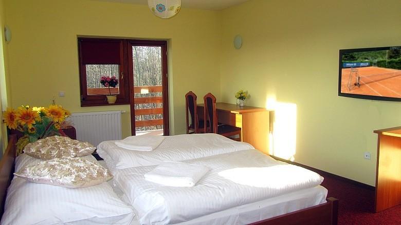 Hotel – 42 rooms from 95 PLN for a single room with breakfast, (32″ TVHDsat, Wi-Fi). Indoor pool and numerous attractions, such as an indoor shooting range). 6 km from Opole on the main road No. 46 to Częstochowa, Warsaw, touching the mighty Stobrawski Forests. On a 3 ha plot, in a park-like setting, surrounded by hundreds of oak trees peeking through the windows, there is a complex of buildings and structures, parking lots, two hotel buildings (1 new) with terraces and balconies, wedding halls, modern conference rooms, tennis halls, a tavern building with excellent cuisine. From the restaurant, you can enjoy a view of the tennis courts, a large hall, and inside it, 2 bowling lanes, 2 badminton courts, 2 billiard tables, a 9-foot professional table from the Taiwanese company “Leo” (Gladiator) and ping-pong tables, as well as a 5-position professional shooting range with pneumatic weapons with automatically changing targets, dynamic shooting at the silhouette of a running wild boar, with TV monitoring.