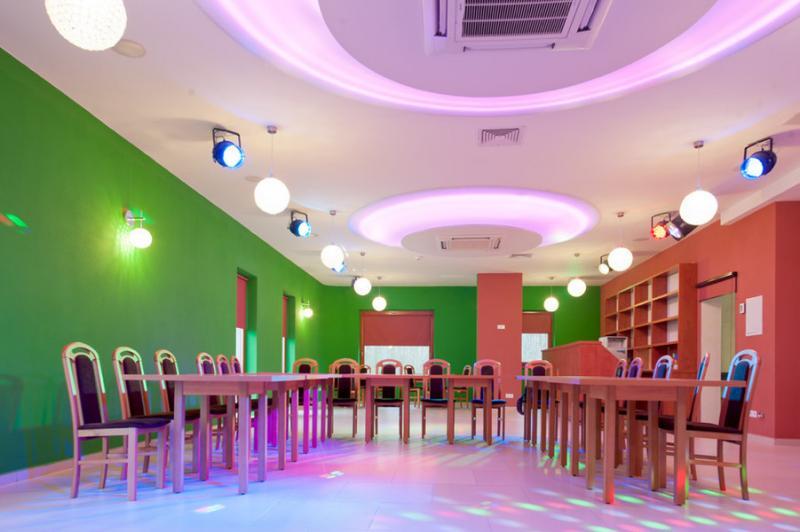 In modernly equipped (3 x 4 m screen) air-conditioned rooms, up to 300 people can fit (in cinema version). Weddings from 20 to 160 people. We offer organizing non-standard conferences with the mentioned attractions, as well as with learning: tennis, badminton, shooting, fitness, water aerobics, Nordic walking, cooking, baking cakes. We invite you to the atmospheric tavern for delicious food: ribs, knuckle, morel soup, sour rye soup, roasted ducks with apples, Silesian dumplings. From the wood-burning stove, we recommend: pizza, meat, roasted piglet or wild boar, flatbread, and from the buffet, cold vodka, beer.