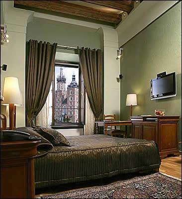 Do Państwa dyspozycji oddajemy 18 komfortowych i stylowo urządzonych pokoi jedno i dwuosobowych, z których okien można podziwiać piękno krakowskiego Rynku oraz poczuć jego niepowtarzalny klimat. W każdym pokoju jest łazienka (kabina prysznicowa lub wanna), klimatyzacja, telewizja satelitarna, kino domowe, telefon, bezpłatny internet, mini bar oraz inne udogodnienia pozwalające cieszyć się pobytem.