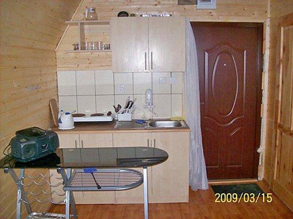 – Aneks kuchenny z płytą dwupalnikową, czajnikiem bezprzewodowym, lodówką, kuchenką mikrofalową, garnkami i szklankami