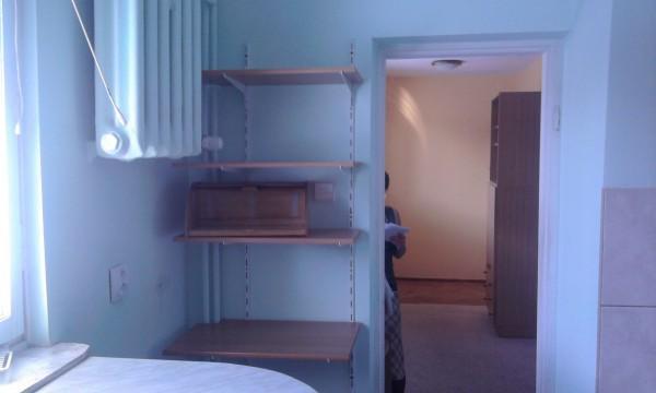 Mieszkanie jest bardzo słoneczne, zlokalizowane na południowy-zachód. Pokój posiada dużą wnękę, na ścianach znajdują się tapety, a na podłodze parkiet i wykładzina dywanowa. Kuchnia jest przestronna i jasna. Przedpokój wykonany jest w drewnianej boazerii i posiada dużą szafę na ubrania. Mieszkanie jest w pełni umeblowane, włączając w to meble kuchenne, mały stół barowy w kuchni z krzesłami, kuchenkę gazową, lodówkę, pralkę, kanapę narożną, komodę i inne elementy. Istnieje również stałe łącze internetowe.