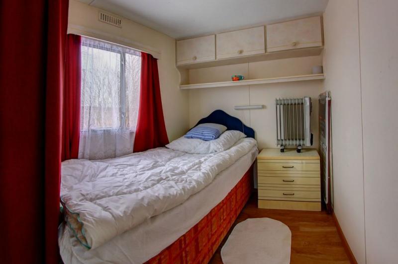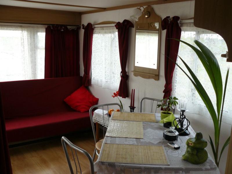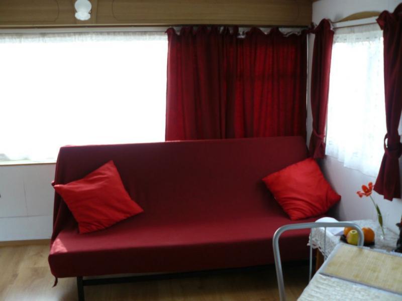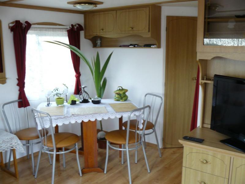 Każdy domek jest starannie wyposażony, aby zapewnić maksymalny komfort. W salonie znajdziesz rozkładaną kanapę oraz stół, przy którym można cieszyć się wspólnymi posiłkami. Salon płynnie łączy się z funkcjonalną kuchnią. Z kuchni prowadzą drzwi do łazienki, a także do sypialni z dużym, podwójnym łóżkiem oraz do pokoju jednoosobowego.