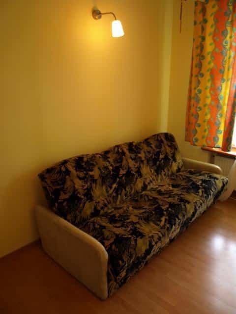 W kawalerce znajdują się dwie rozkładane kanapy, które umożliwiają wygodne spanie dla czterech osób. Dodatkowo, na życzenie, możemy dostarczyć duży, komfortowy materac, zwiększając liczbę miejsc do spania do sześciu.