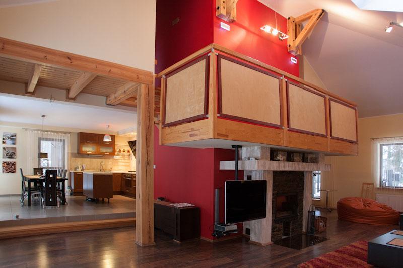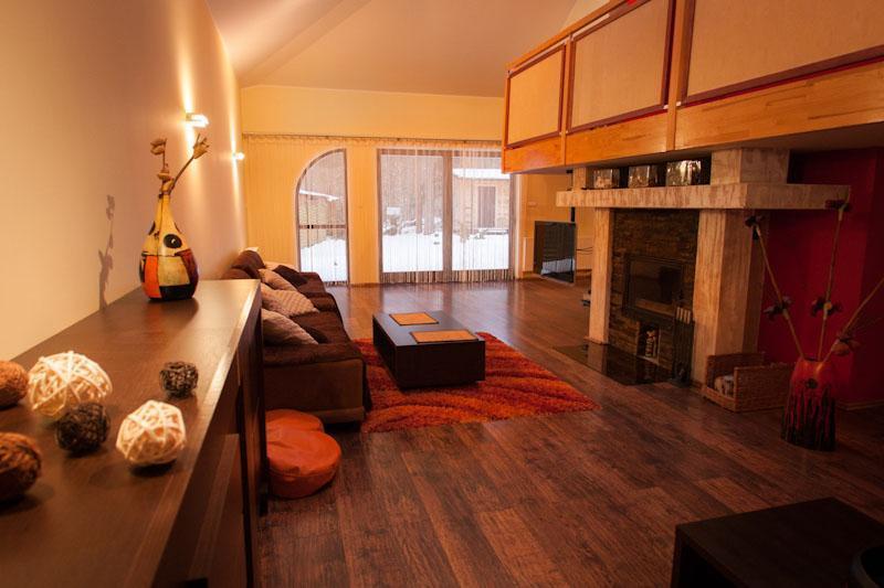 – Salon z kominkiem
