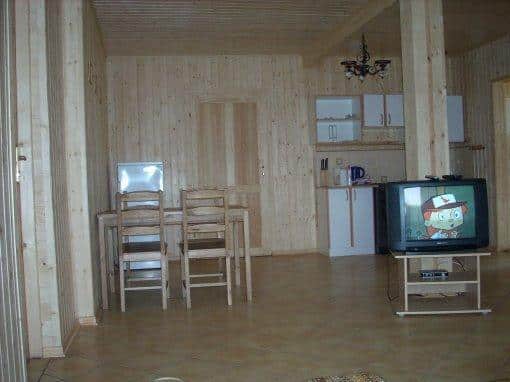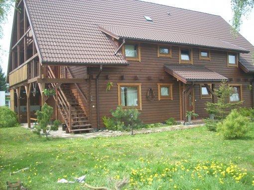 – Drewniany dom z apartamentem dla 8-10 osób, który obejmuje hol, trzy pokoje i podwójną łazienkę,