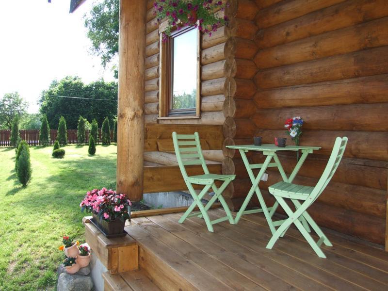 Na zewnątrz czeka zadaszony taras z drewnianym stołem i ławą, idealny na posiłki na świeżym powietrzu. Obok znajduje się drewniana wiata z kącikiem kuchennym do grillowania. Dla rozrywki przygotowaliśmy gry dla dzieci i dorosłych.