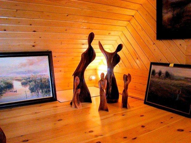 – Na parterze: duże pomieszczenie z 2-osobowym łóżem, stołem oraz dodatkowymi meblami.