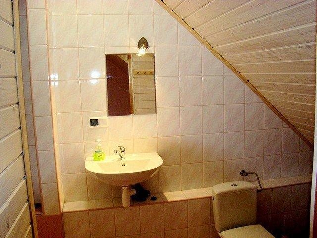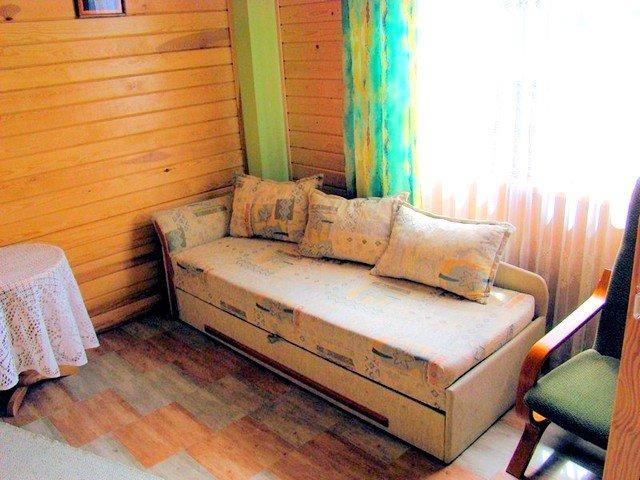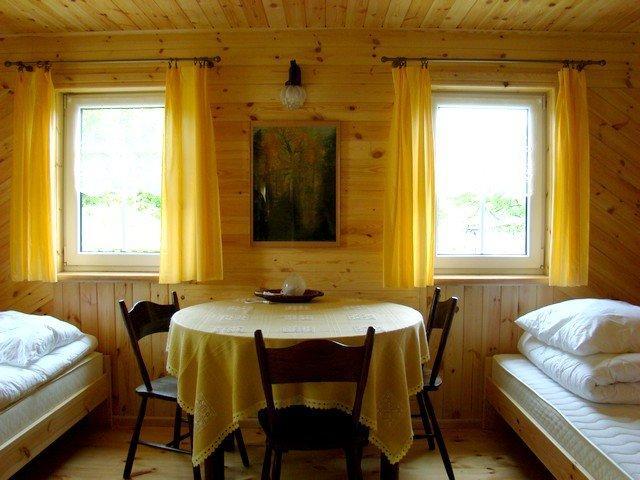 – Na piętrze: przestronna łazienka oraz pokój z dwoma łóżkami i stolikiem z krzesłami.
