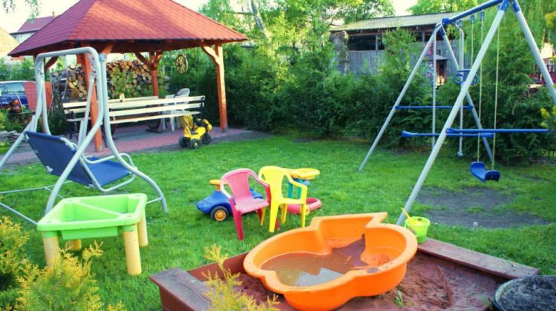 – Mały plac zabaw dla dzieci z huśtawką i piaskownicą