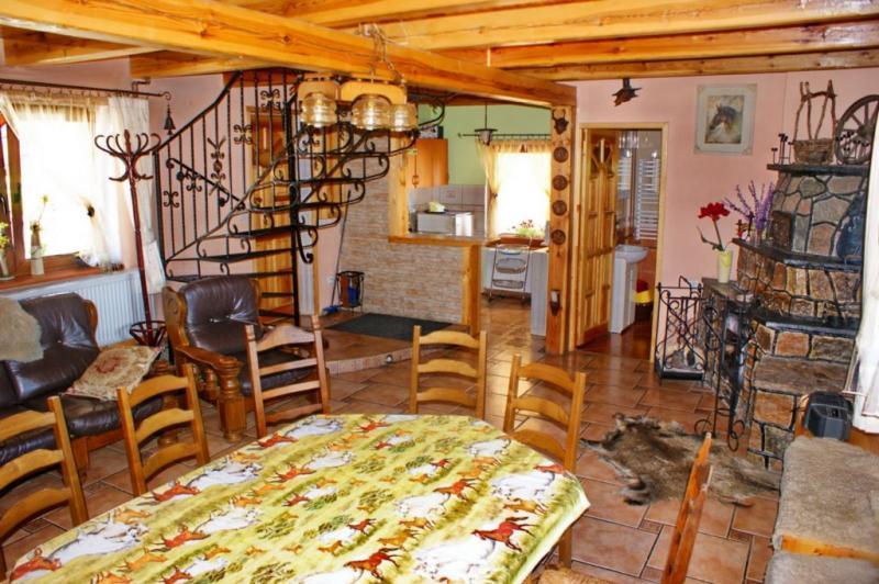 Zapraszamy do Kuźni – urokliwego domku, który pomieści do dziewięciu osób. To idealne miejsce na relaks i odpoczynek w otoczeniu przyrody. Domek składa się z trzech przytulnych sypialni i łazienki na piętrze oraz przestronnego salonu z kominkiem, aneksu kuchennego i dodatkowej łazienki na parterze. Kuźnia powstała na bazie starej kuźni, która funkcjonowała do końca lat osiemdziesiątych, co nadaje jej niepowtarzalny klimat i ciepłą atmosferę.