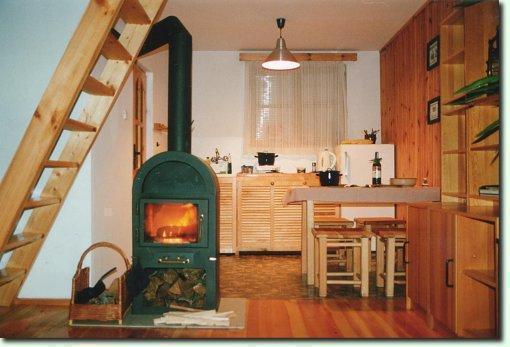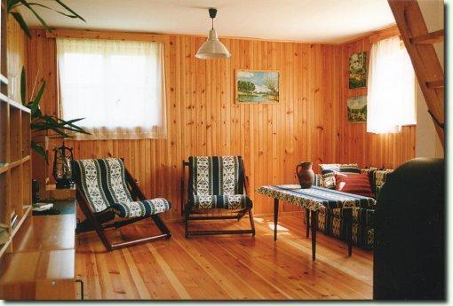 – Pokój wypoczynkowy z kominkiem, gdzie można zrelaksować się na wygodnej kanapie (możliwość spania dla dwóch osób),
