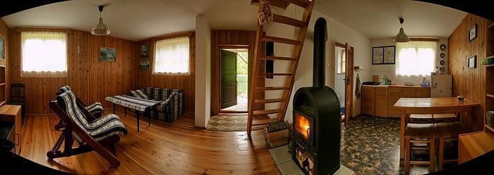 Domek przeznaczony jest dla maksymalnie 5 osób i składa się z trzech pomieszczeń: