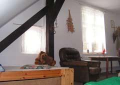 – Skromnie, ale wygodnie urządzone poddasze mieszczące 4-5 osób,