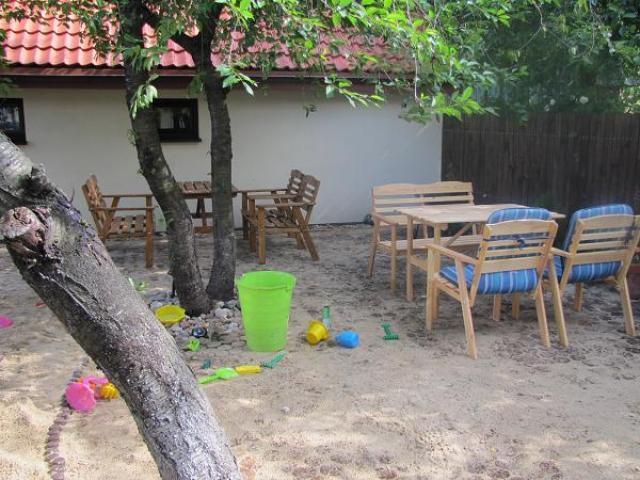 W naszej willi oferujemy komfortowe pokoje z łazienkami, które spełniają wysokie standardy. W ogrodzie czekają na Ciebie meble ogrodowe i grill, a dla dzieci przygotowaliśmy plac zabaw z dużą trampoliną i kolorowym domkiem do zabaw.