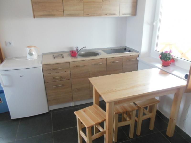 Nasze domki pomieszczą od 4 do 5 osób. W sypialni znajdują się dwa pojedyncze łóżka, które można złączyć w jedno duże. W pokoju dziennym do dyspozycji są rozkładana amerykanka oraz łóżko dwuosobowe.
