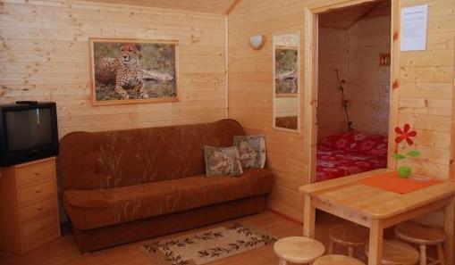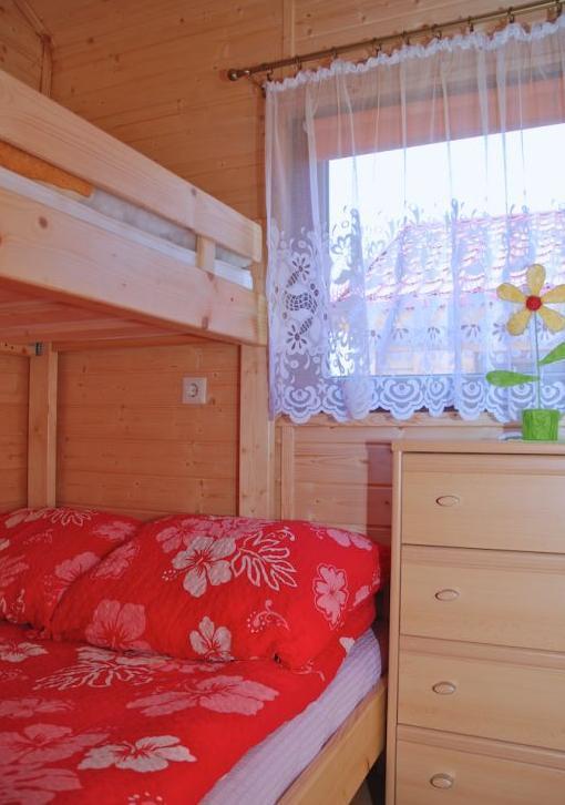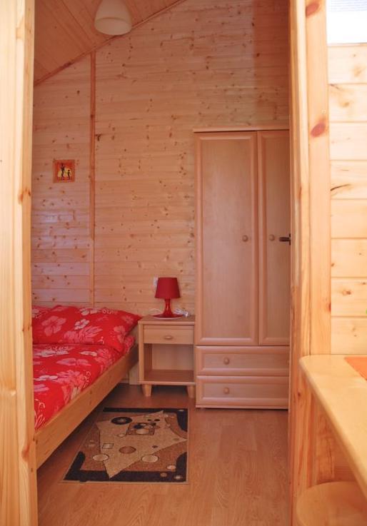 Każdy z domków posiada dwie sypialnie. W jednej sypialni znajduje się łóżko piętrowe dla dwóch osób oraz łóżko dla jednej osoby. Druga sypialnia wyposażona jest w łoże małżeńskie. W domkach znajduje się również salon z telewizorem, wersalką, taboretami oraz stołem. Aneks kuchenny jest w pełni wyposażony i zawiera lodówkę, kuchenkę gazową, czajnik, mikrofalę, naczynia, garnki oraz sztućce. W domkach znajduje się również łazienka z prysznicem, szafką, umywalką, lustrem, wieszakami oraz toaletą. Na zewnątrz każdego domku znajduje się taras wypoczynkowy z meblami turystycznymi. Dodatkowo, dla Państwa wygody, udostępniamy parawan, leżak plażowy oraz parasol.