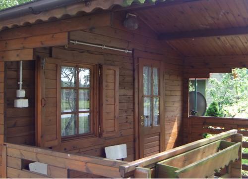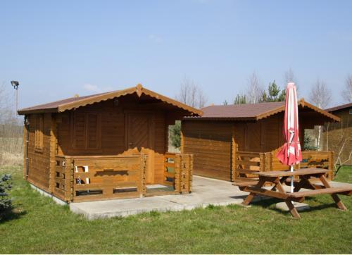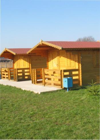 – Domki campingowe z pełnym wyposażeniem (łazienka, kuchnia, sypialnie),