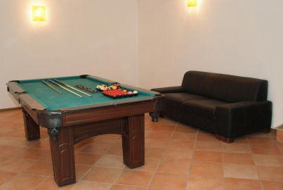 – Pokój rekreacyjny z bilardem, sofą i dartem