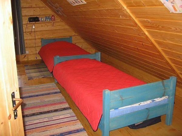 – Duża sypialnia (4+1 łóżek) z wyjściem na zadaszony balkon z widokiem na jezioro