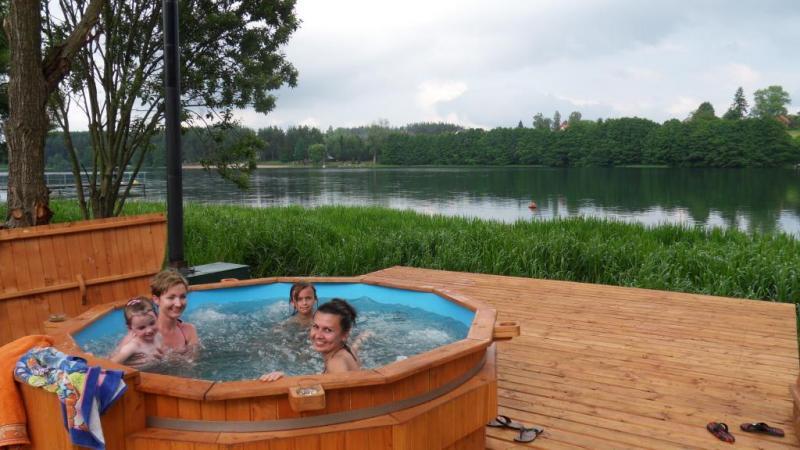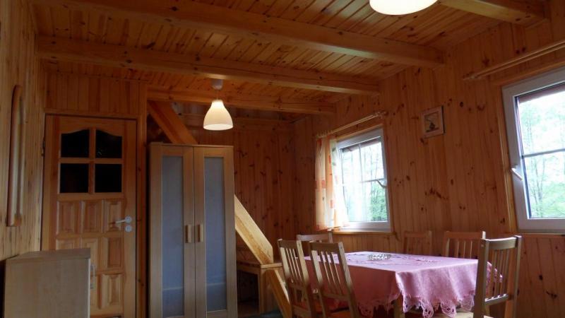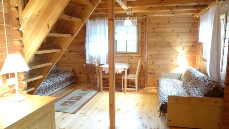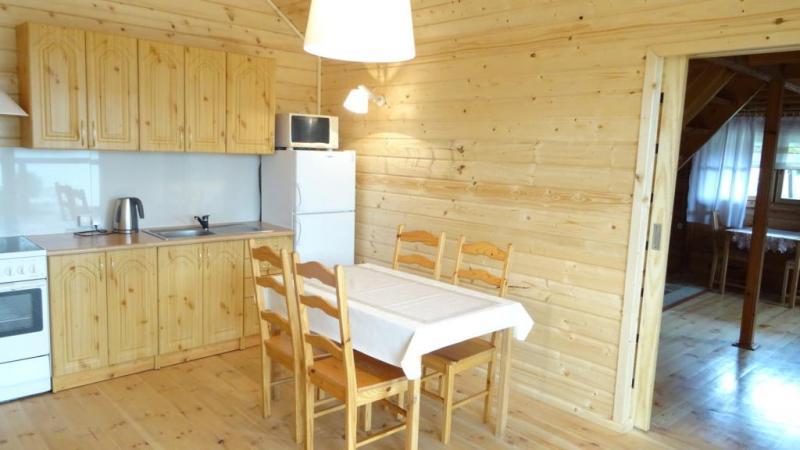 Każdy domek wyposażony jest w łazienkę z prysznicem, lodówkę, czajnik elektryczny, pościel oraz aneks kuchenny z kuchenką gazową.