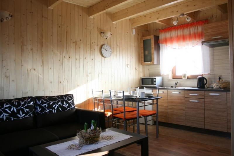 – Pokój dzienny z rozkładaną sofą, stołem, 4 krzesłami, telewizorem LCD, bezprzewodowym Internetem i grzejnikiem elektrycznym,