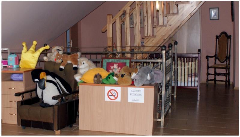 – **Komfortowe zakwaterowanie**: Oferujemy przytulne pokoje z łazienkami, jadalnię z kominkiem, salon z telewizorem oraz kącik zabaw dla dzieci.
