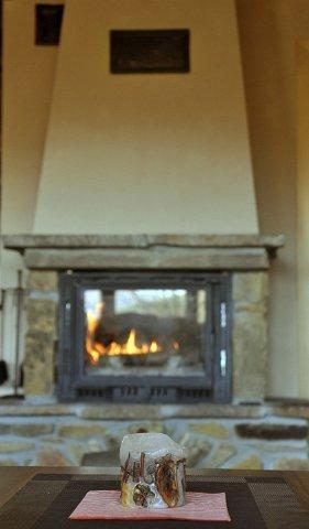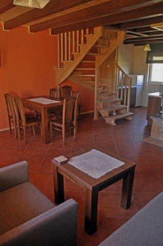 – Salon z kominkiem (TV, stół, rozkładana sofa, rozkładany fotel)