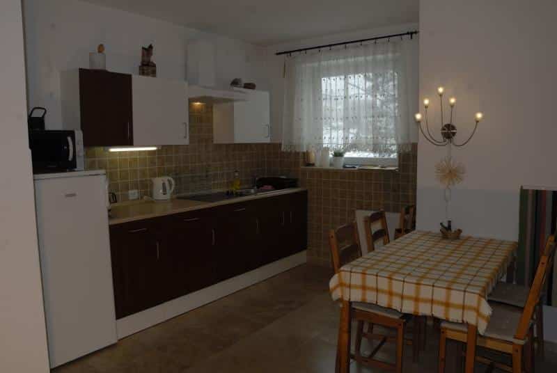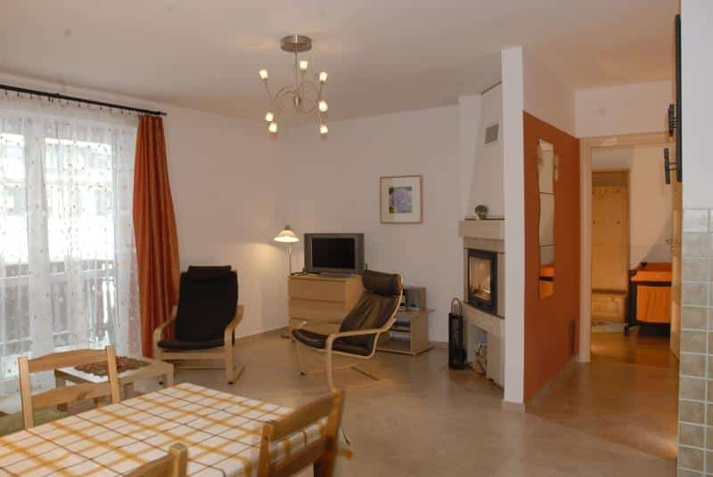 W pełni wyposażona kuchnia (duża lodówka, kuchenka mikrofalowa, płyta elektryczna 4-palnikowa, ekspres do kawy, czajnik elektryczny, żelazko), łazienka, kominek, balkon (z widokiem na Giewont).