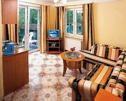 Domki letniskowe są dostępne w sezonie letnim, natomiast apartamenty są dostępne przez cały rok. Jeśli chodzi o wyżywienie, serdecznie polecamy naszą stołówkę, gdzie można skosztować pysznych domowych dań.