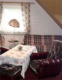 Proponujemy zakwaterowanie w przytulnych pokojach 2-, 3- i 4-osobowych. Każdy pokój wyposażony jest w telewizor i dostęp do bezprzewodowego internetu, co zapewnia komfortowy pobyt. Na piętrze do dyspozycji gości znajduje się aneks kuchenny, a łazienki są wspólne dla dwóch pokoi. Pokoje są zamykane, a część wynajmowana posiada niezależne wejście, co gwarantuje prywatność i swobodę.