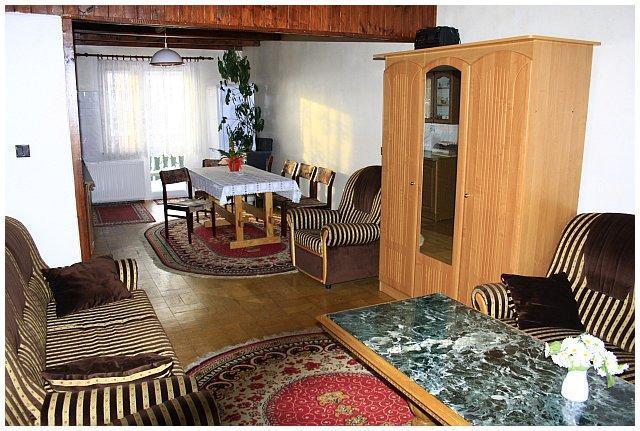 Na pierwszym piętrze mieszczą się dwie przytulne sypialnie – jedna dwuosobowa i druga czteroosobowa. Naszym gościom udostępniamy również piękny ogród z dużą altaną, siedziskami i grillo-kominkiem. Dla najmłodszych przygotowaliśmy plac zabaw z piaskownicą i huśtawkami.