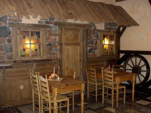 Do dyspozycji naszych gości jest również restauracja, która pomieści 50 osób. Restauracja posiada drink-bar, taras oraz salę konferencyjną na około 40 osób. Zapraszamy do naszej oryginalnie urządzonej restauracji, gdzie serwujemy pyszne, tradycyjne potrawy. W menu znajdą Państwo między innymi: