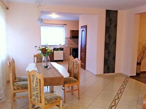 Dom jest przystosowany do całorocznego użytkowania dzięki ogrzewaniu podłogowemu i kaloryferom. W łazience znajdziemy wannę rogową, prysznic, dwie umywalki, bidet oraz toaletę. Dodatkowe WC jest również dostępne dla gości. Dla rodzin z dziećmi przygotowaliśmy rozkładane łóżeczko z siatką.