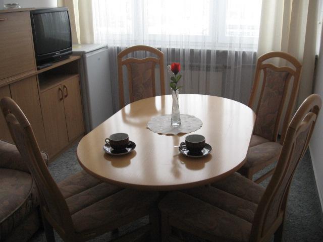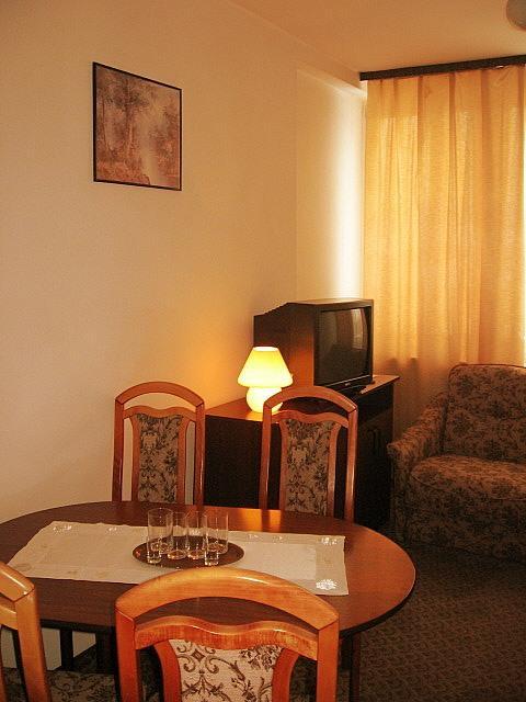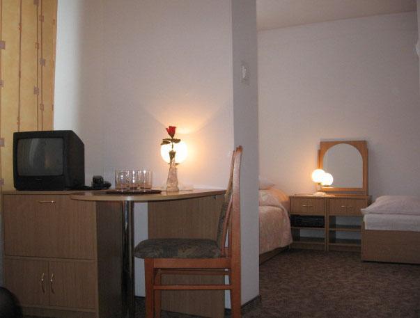 Każdy pokój wyposażony jest w łazienkę z natryskiem, telewizor, radio oraz telefon, co zapewnia wysoki standard i wygodę.