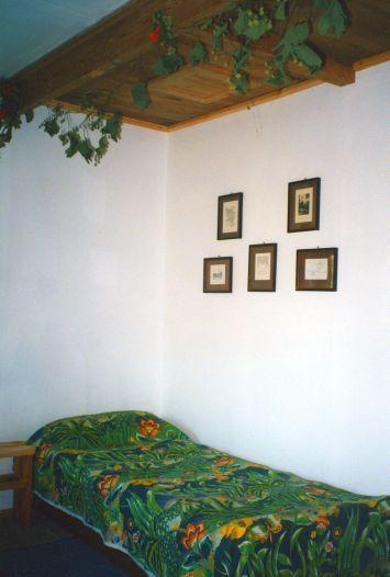 – Pokój dwuosobowy z łóżkiem o wymiarach 160 cm x 200 cm, stolikiem, ławeczką z okresu Księstwa Warszawskiego, fotelem, krzesłem, radiem, telewizorem i dywanem. Widok z okna rozciąga się na łąkę, drogę i rzekę Bystrą. Istnieje możliwość dostawienia łóżeczka dziecięcego oraz skorzystania z wanienki, rowerków, huśtawki i krzesełka ze stolikiem dla maluszków.