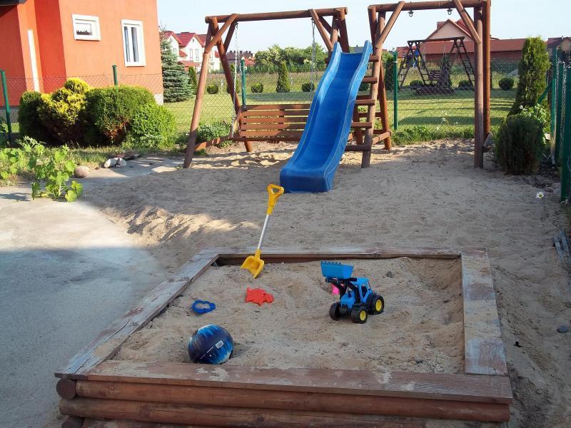 – Huśtawki, piaskownica i zjeżdżalnia dla dzieci,