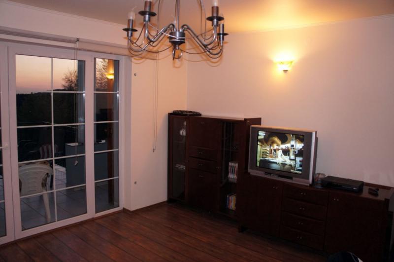 – Parter: przestronny salon z kominkiem i telewizorem satelitarnym, w pełni wyposażona kuchnia, jadalnia, łazienka oraz przedpokój z dużą szafą. Dodatkowo, do dyspozycji jest duży taras.