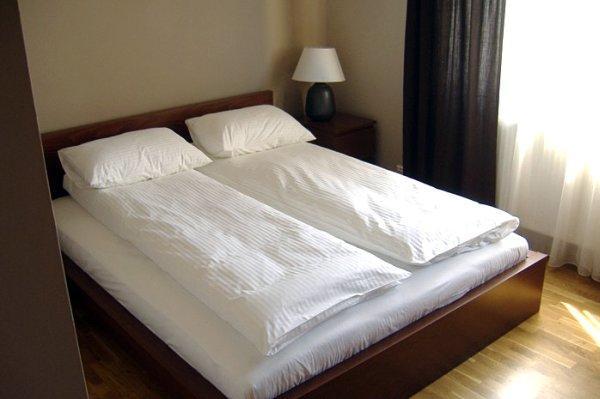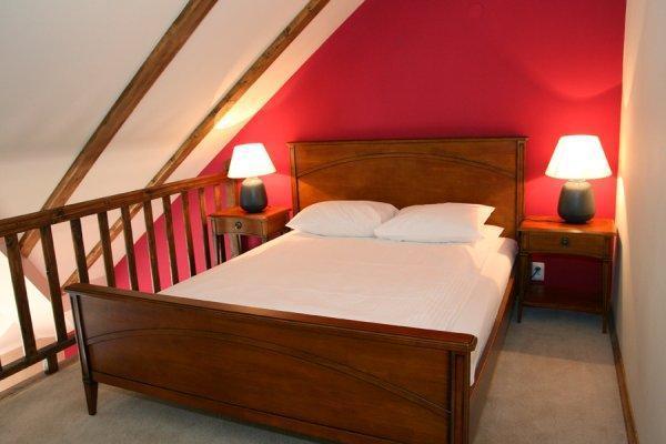 – **Apartament**: wygodne rozwiązanie dla większych grup, z dwiema oddzielnymi sypialniami – jedną z łóżkiem małżeńskim, drugą z dwoma pojedynczymi łóżkami. Apartament posiada także przedsionek, łazienkę z prysznicem i suszarką do włosów, przestronną szafę, komodę, szafki nocne, telewizor z kanałami satelitarnymi, telefon oraz balkon.