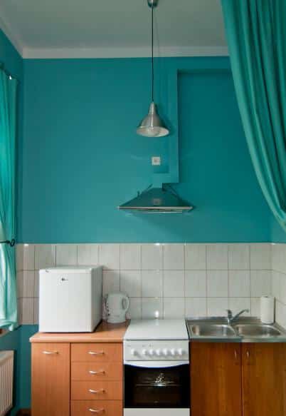 – W pełni wyposażoną kuchnię