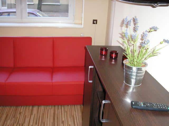 – Pokój dzienny z rozkładaną wersalką, TV LCD 32′ z telewizją kablową i kanałami HD